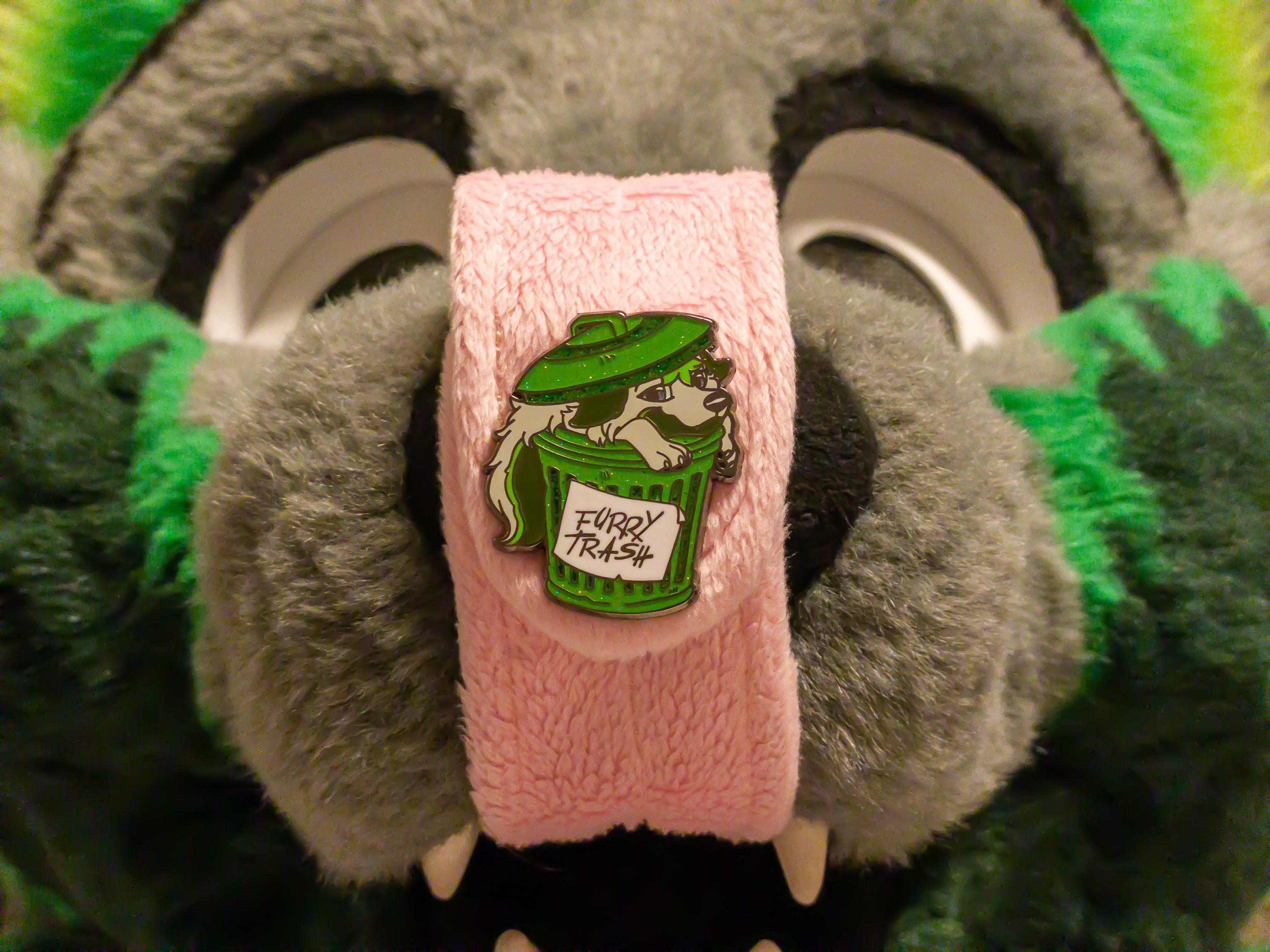 We all have a little trash in ourselves, and what better way to show that than with this fun pin? This pin features Fauxil in a glittery green trash bin (or maybe a recycle bin?) with a wonderfully smug expression showing he knows exactly why he's there.